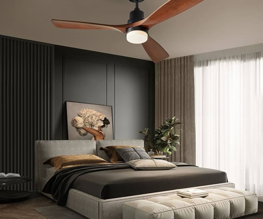 This versatile best-seller features three decade-grown mahogany wood blades and a silent DC motor, making it an ideal choice for bringing energy-efficient cooling and three-tone LED lighting to standard-sized bedrooms and studies.
